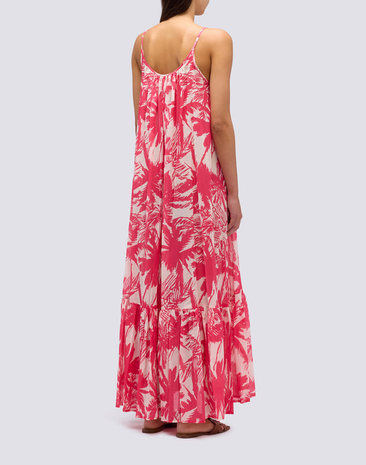 ABITO LUNGO IN COTONE VOILE CON STAMPA TROPIC SAVANA