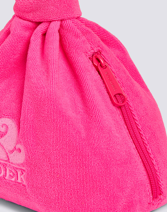 TERRY CLOTH CLUTCH BAG WITH DECORATIVE KNOT
