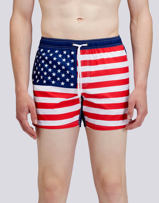 SHORT SWIM SHORTS WITH AN ELASTICATED WAISTBAND RECYCLED POLYESTER REPREVE® UNITED STATES FLAG