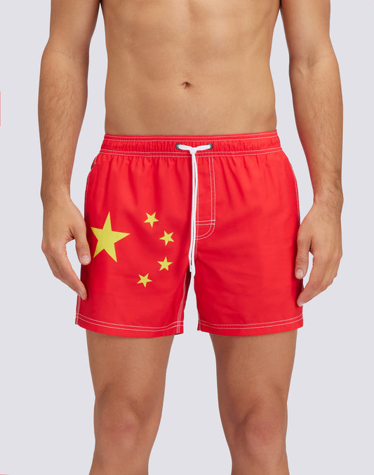 SHORT SWIM SHORTS WITH AN ELASTICATED WAISTBAND RECYCLED POLYESTER REPREVE® CHINA FLAG