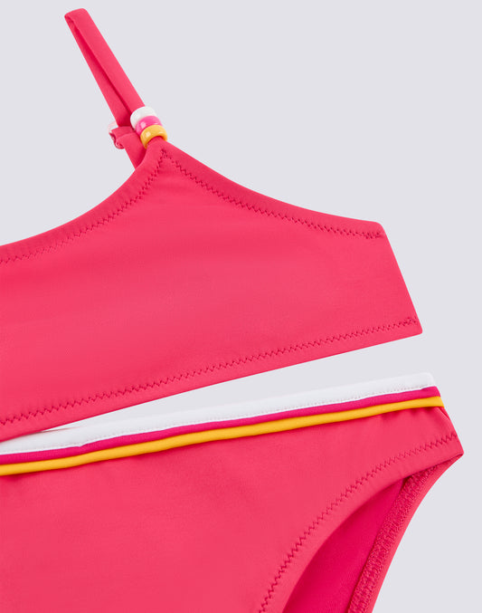 Two-piece swimsuits for girls offer style and freedom at the beach or pool. Comfortable and practical, they allow little ones to play without impediments. Available in bright colors and cheerful patterns, with coordinated tops and bottoms. Made with chlorine and UV resistant fabrics, they guarantee protection and durability. Ideal for summer fun.