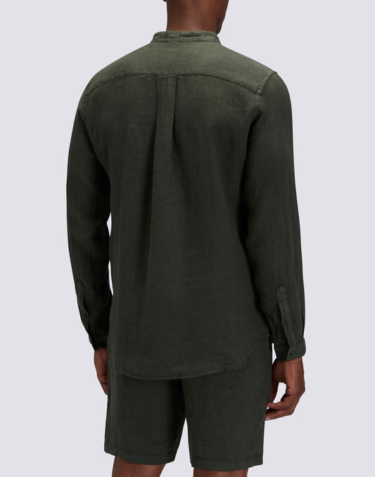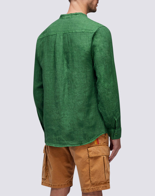 GARMENT DYED LINEN SHIRT WITH MANDARIN COLLAR