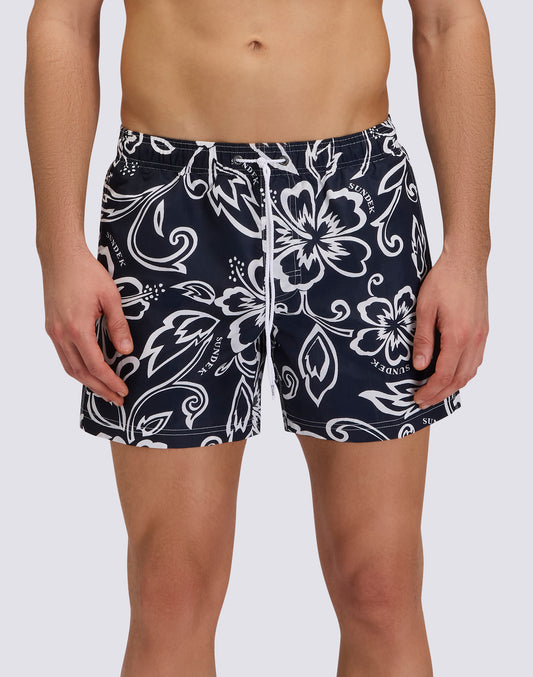 MEN'S SHORT SWIMSUIT WITH ELASTIC WAIST AND ARCHIVE HIBISCUS PRINT SK23
