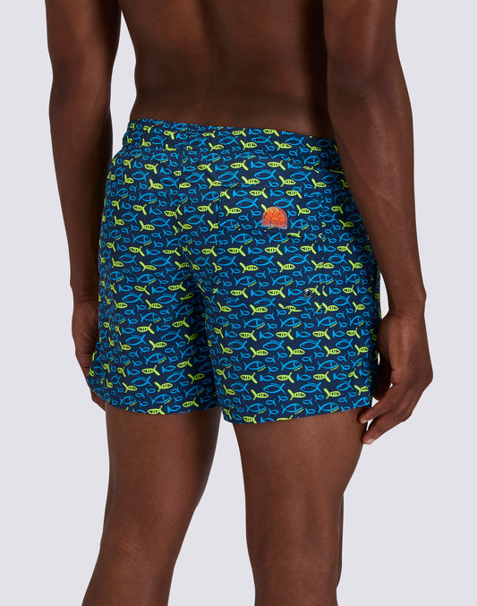 MEN'S SHORT SWIMSUIT WITH ELASTIC WAIST AND FISHAZ PRINT IN RECYCLED POLY