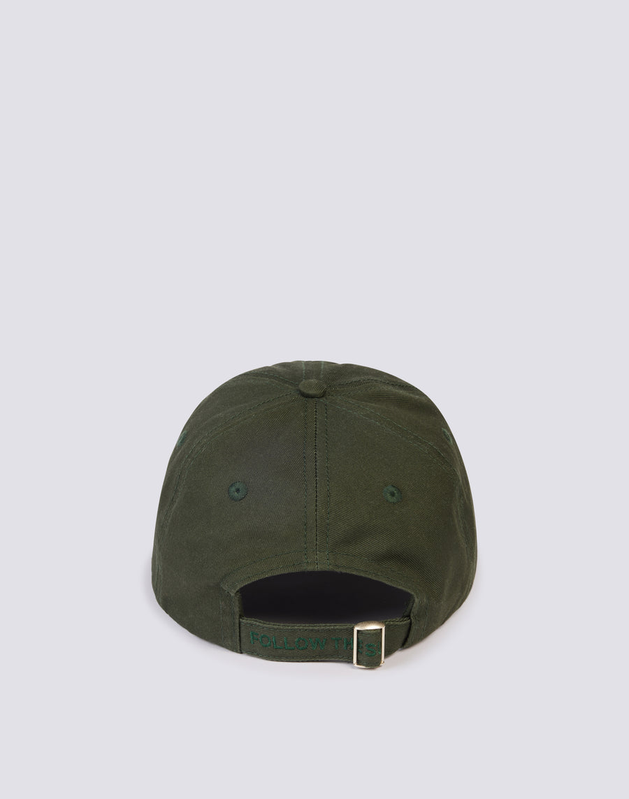 Back closure with adjustable strap and FOLLOW THE SUN writing