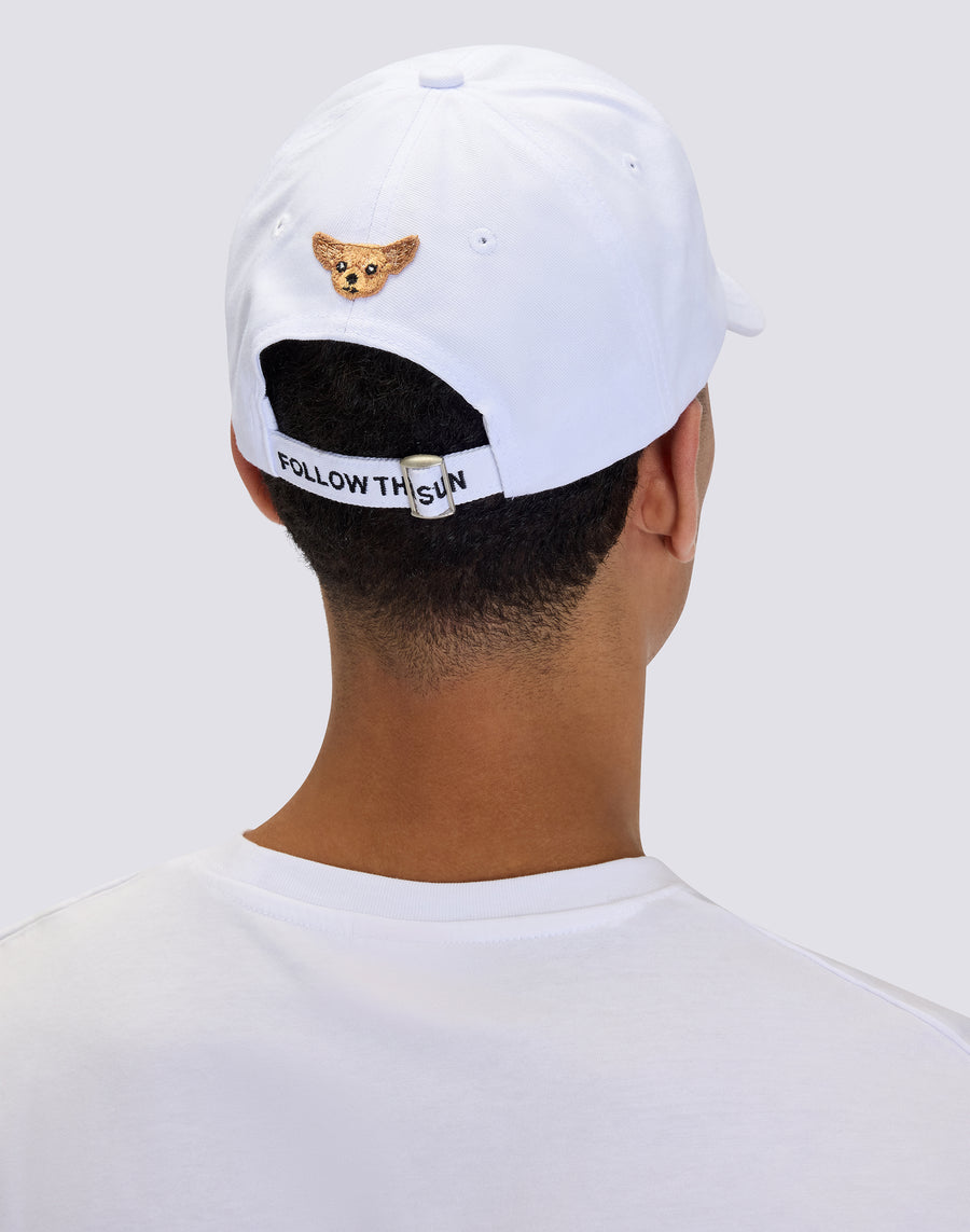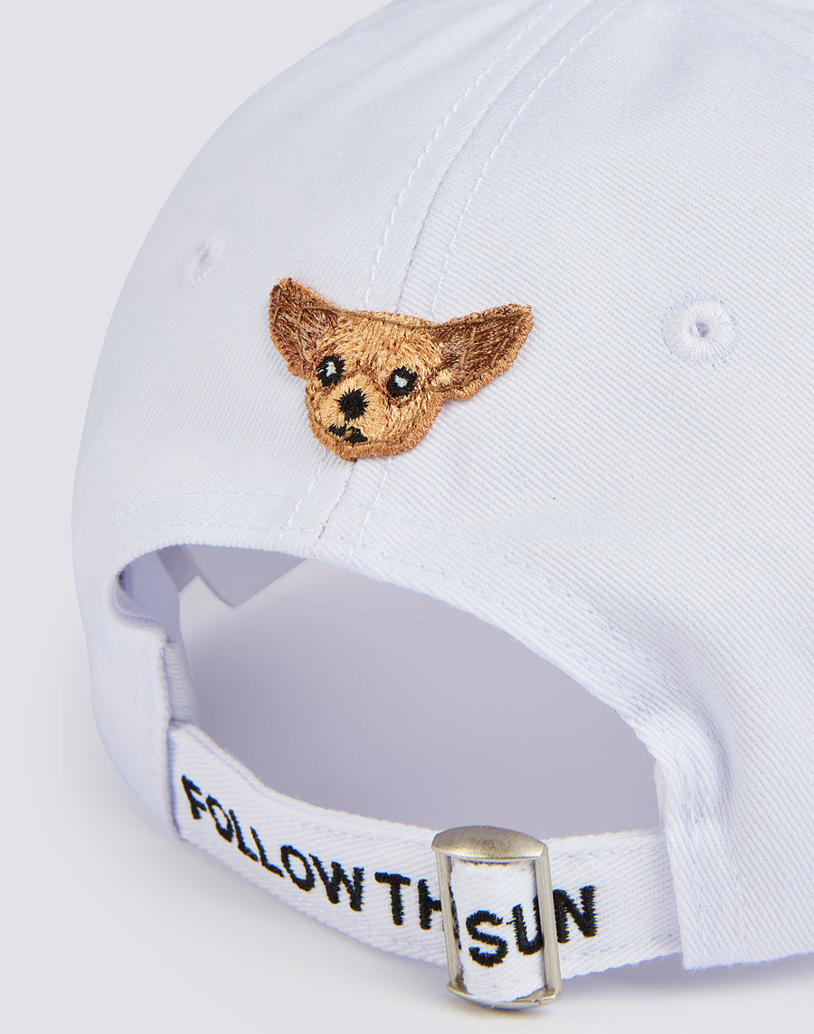 Sundek & Pelo Foundation capsule baseball cap with chihuahua patch.