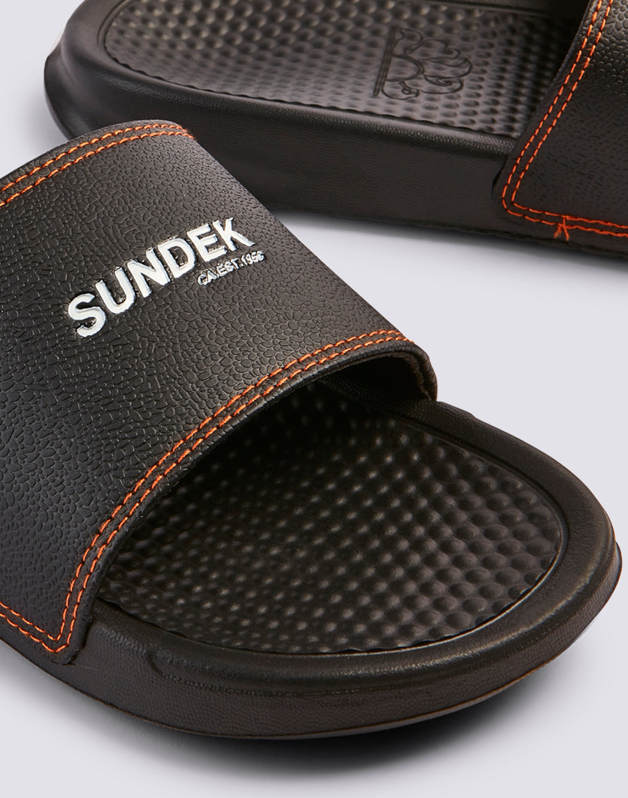 Bandeau sandal with contrasting stitching and logo print. Sole height 2 cm. Comfortable fit.