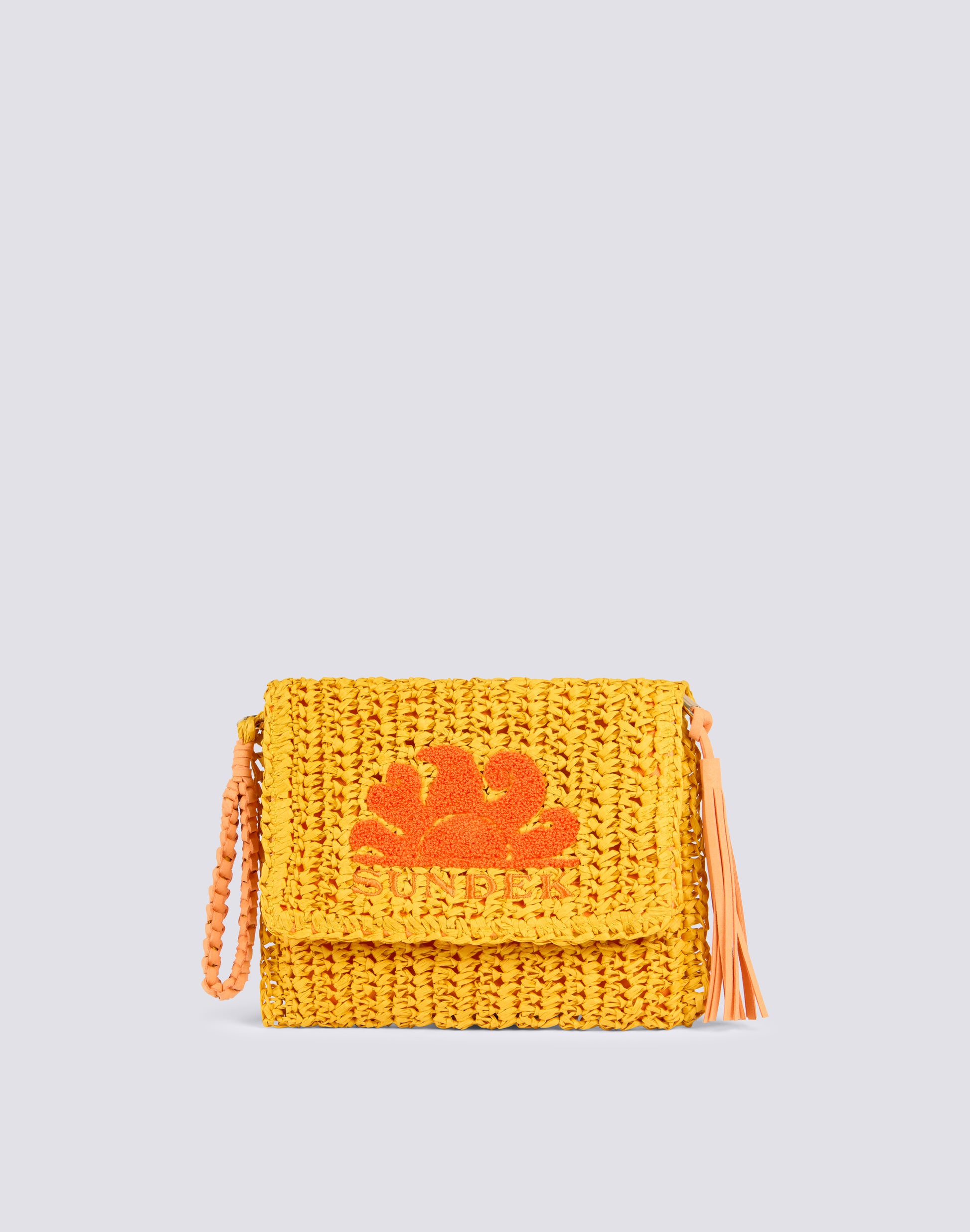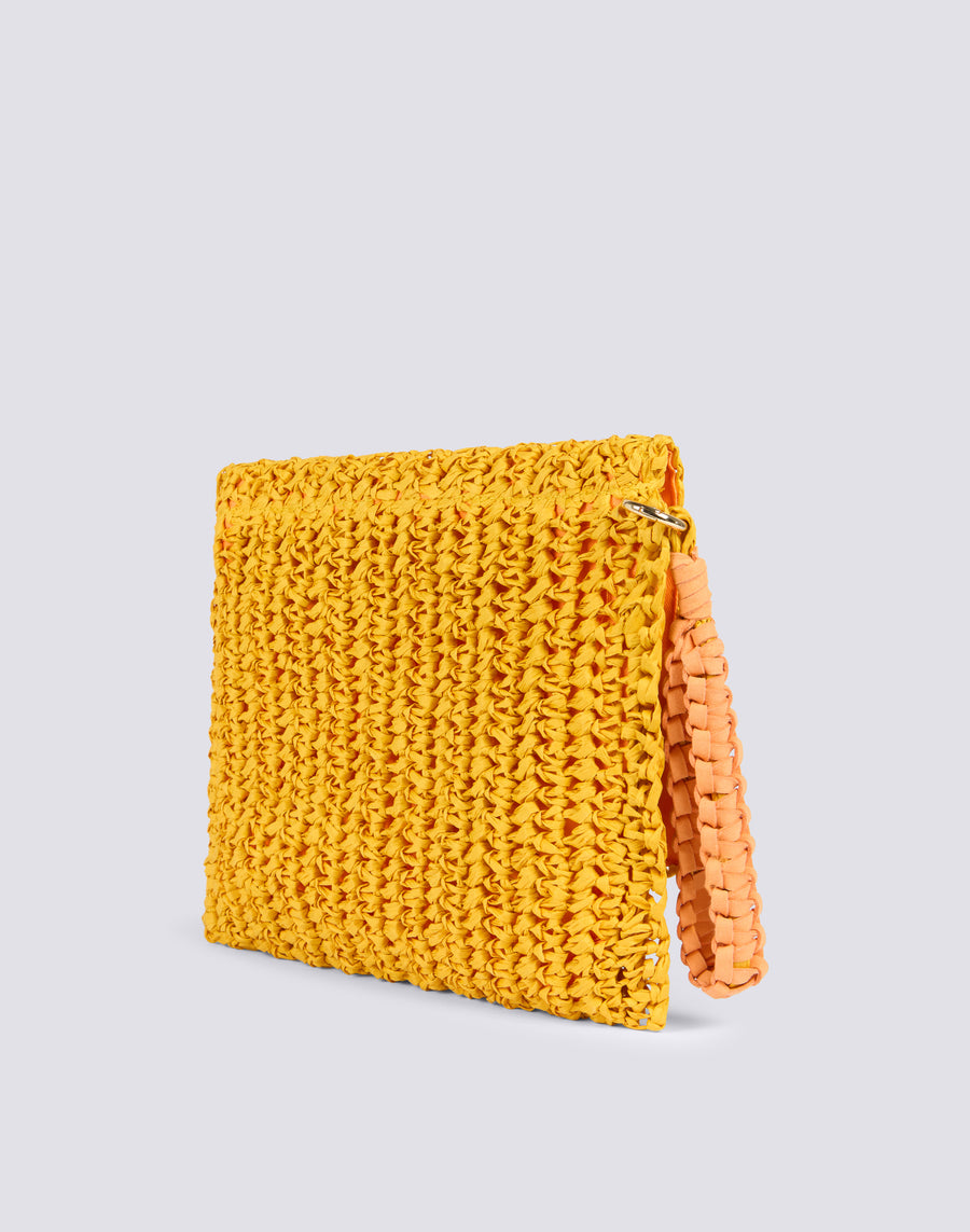 Gabi paper straw clutch bag with zip fastening, loop for hanging and logo in sponge on the front. A minimal accessory, to always have with you to carry what you need.