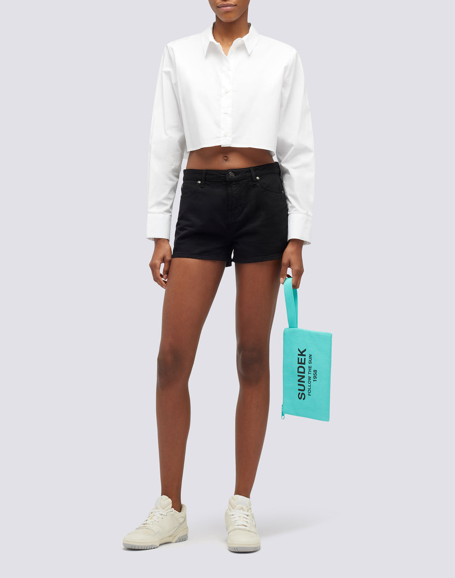 Clutch in stone washed cotton canvas perfect in its practicality for carrying with you everything you need for your activities.