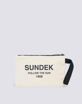 Clutch bag in stone washed cotton canvas perfect in its practicality to carry everything you need for your daily activities.