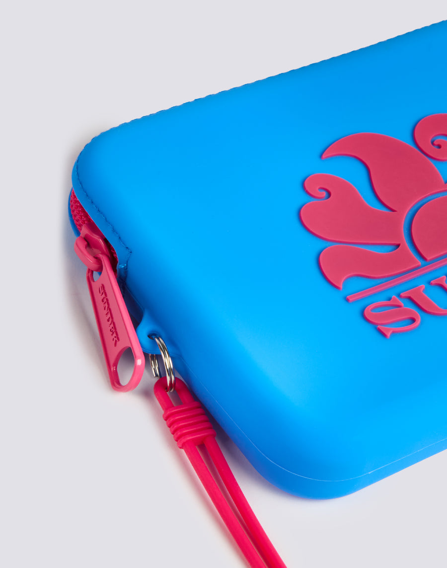 Small rubber clutch bag to carry everything you need. Practical and colourful, suitable for travelling, the beach, the gym or the pool.