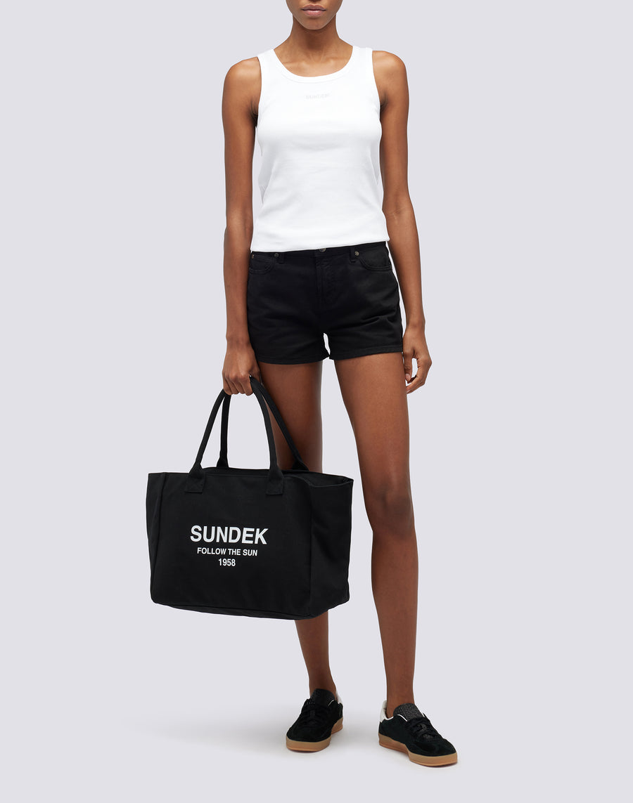 This chic and sporty shopping bag pairs nicely with any casual outfit: a practical option to carry everything you need for your daily activities. Its unlined design includes an inside pocket to quickly find the items you want to keep close at hand.