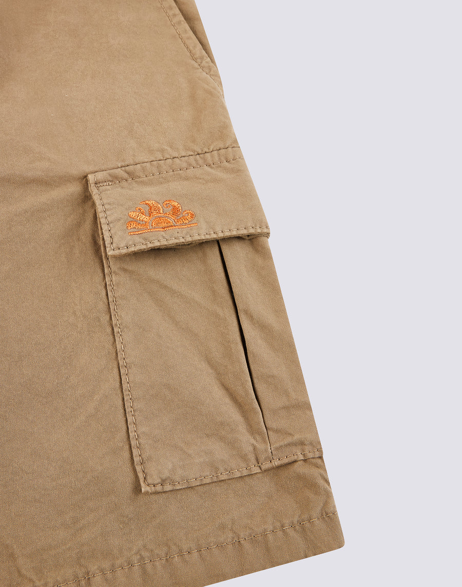 Garment-dyed cargo walkshorts in poplin cotton. Lightweight, comfortable, practical and stylish for running freely. Equipped with button closure and belt loop. Iconic rainbow on the back.