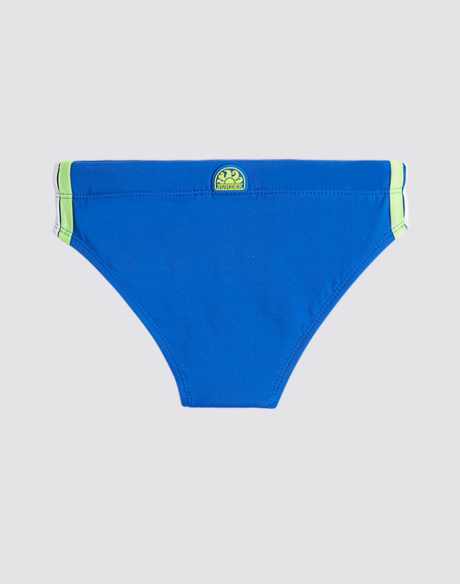 Immerse yourself in the colours of the rainbow. Child's swimming trunks in regenerated Econyl nylon.