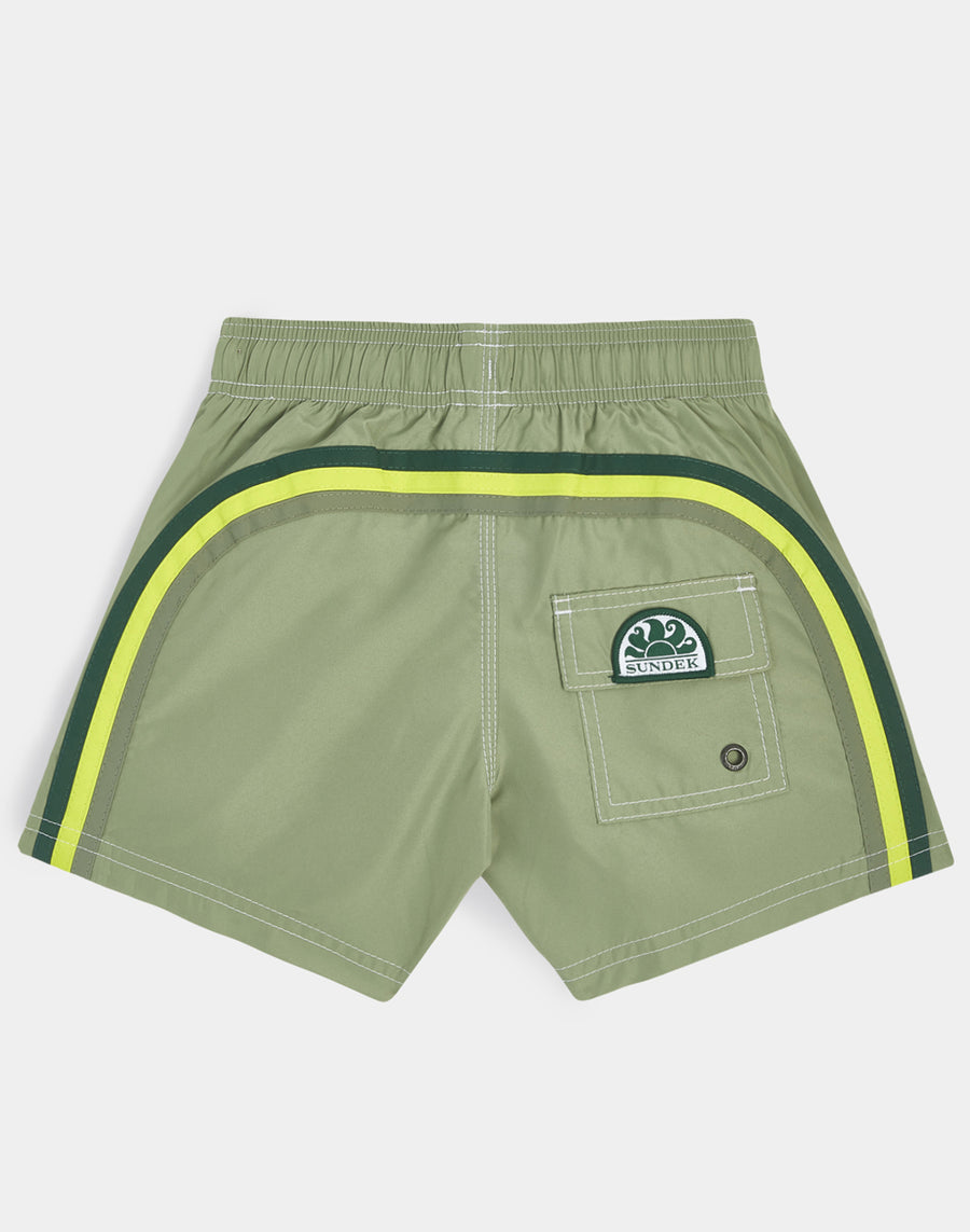 Intense color and hyper-comfortable quick-drying fabric for these baby boy beach shorts. A model that will accompany your child in his many activities on vacation, perfect for moving and playing in complete freedom.