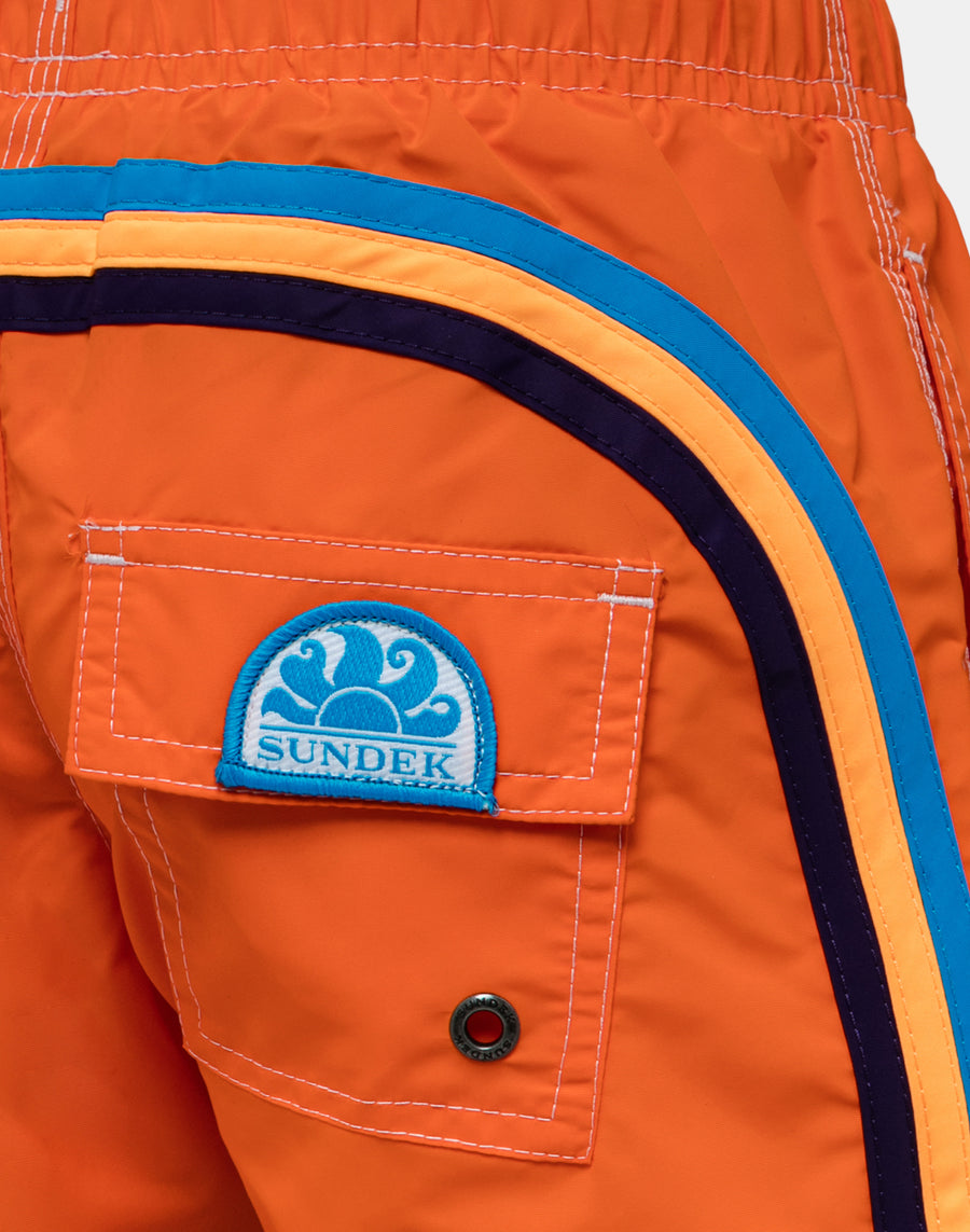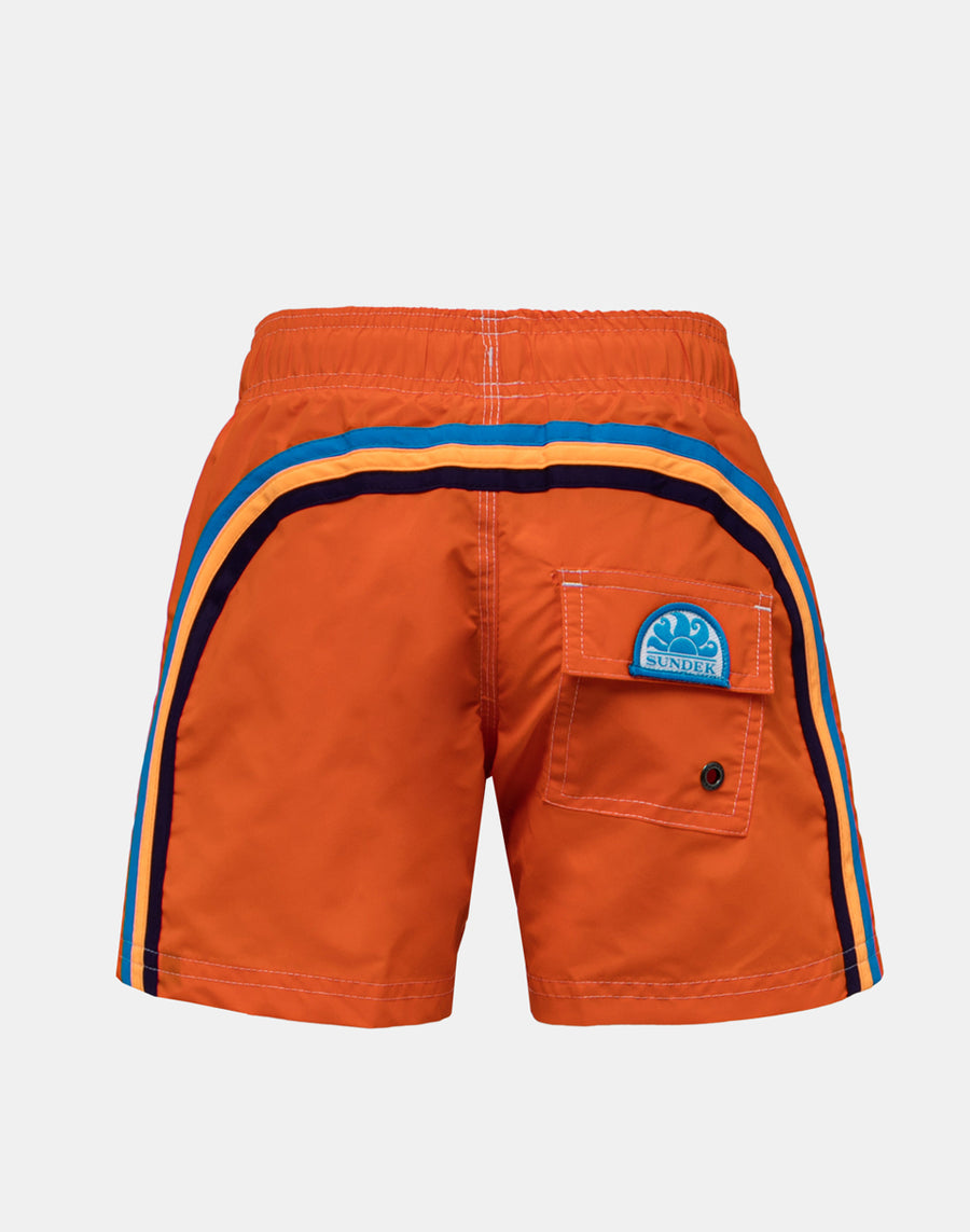 These boys' swim shorts feature intense colours and a super-comfortable, quick-drying fabric. A style that will accompany your little boy in all his holiday activities, perfect for moving around and playing in complete freedom. Made from our classic nylon taffeta fabric and constructed with three-needle stitching for durability. Pack them in your suitcase year after year.