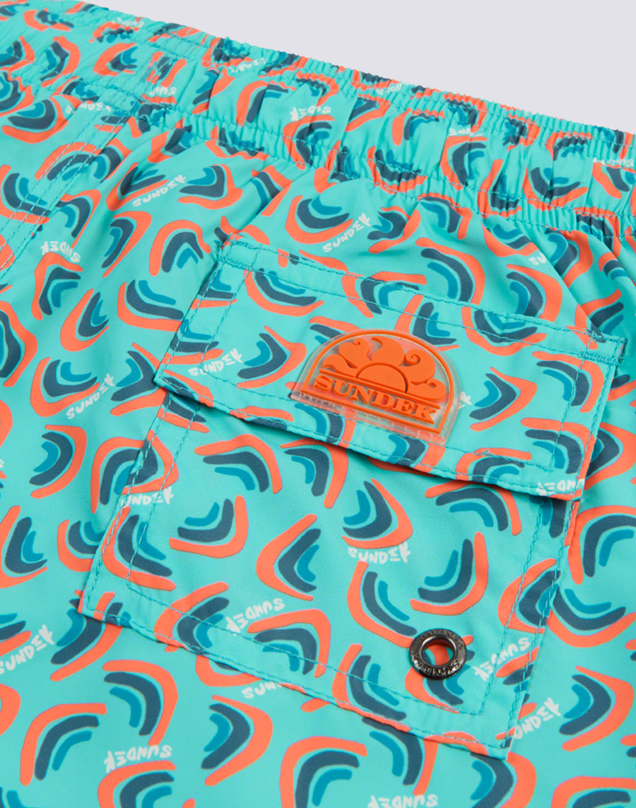 SHORT SWIMSUIT WITH ELASTIC WAIST AND RAINBOW PRINT IN RECYCLED POLY