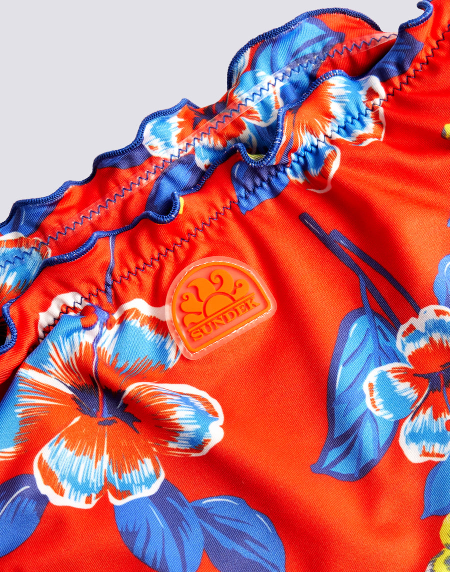 RED FLORAL HIBI PANSY PRINT GIRL BIKINI