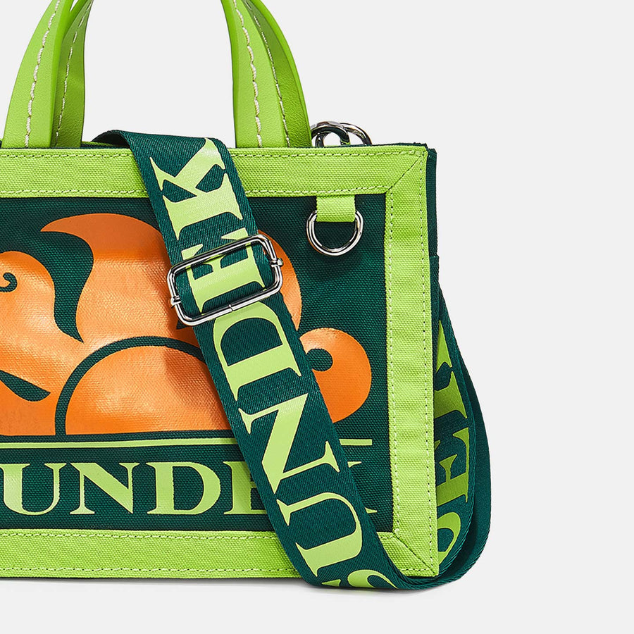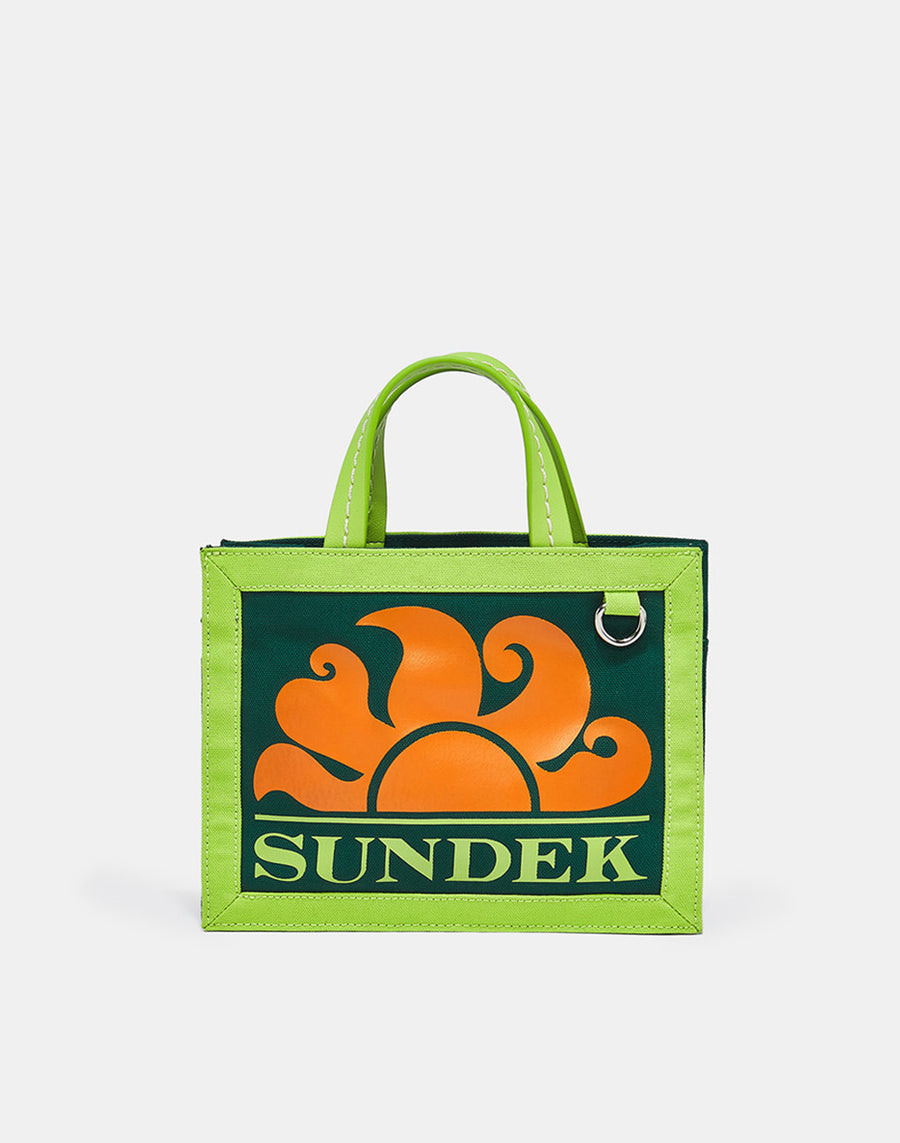 Small bag designed to carry by hand or across the body. Made from canvas with a printed logo and detachable crossbody strap. Iconic surfboard charm inspired by the history of Sundek