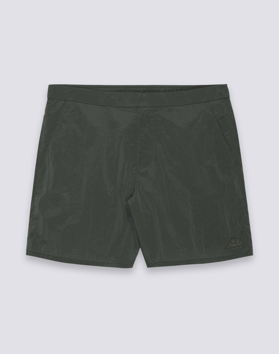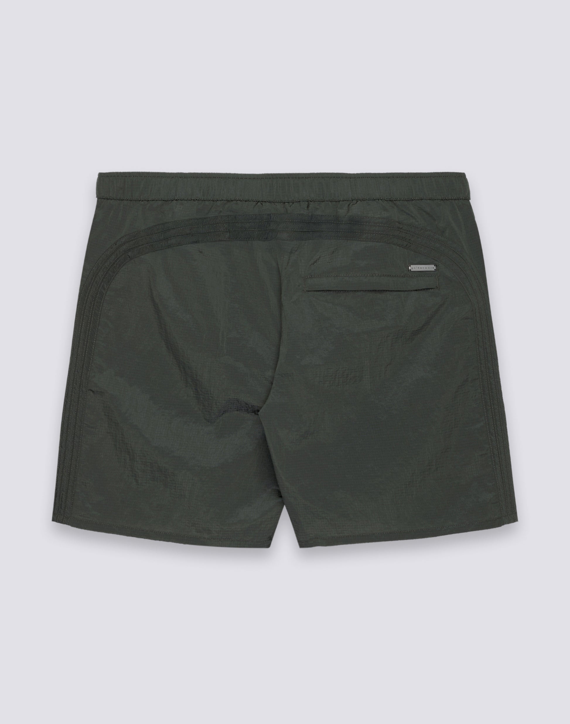 Ripstop Nylon is a technical fabric featuring a reinforced grid weave that prevents tears from spreading. This special structure, visible as small woven squares, makes the fabric extremely durable while maintaining exceptional lightness. The distinctive grid texture is not only functional but also creates a distinctive visual effect. This geometric pattern gives the swimsuit a technical and modern look.