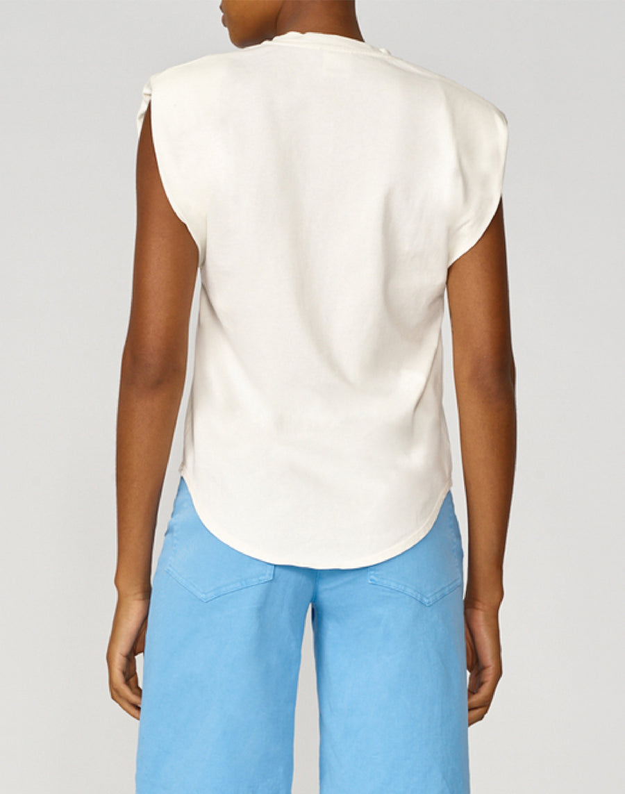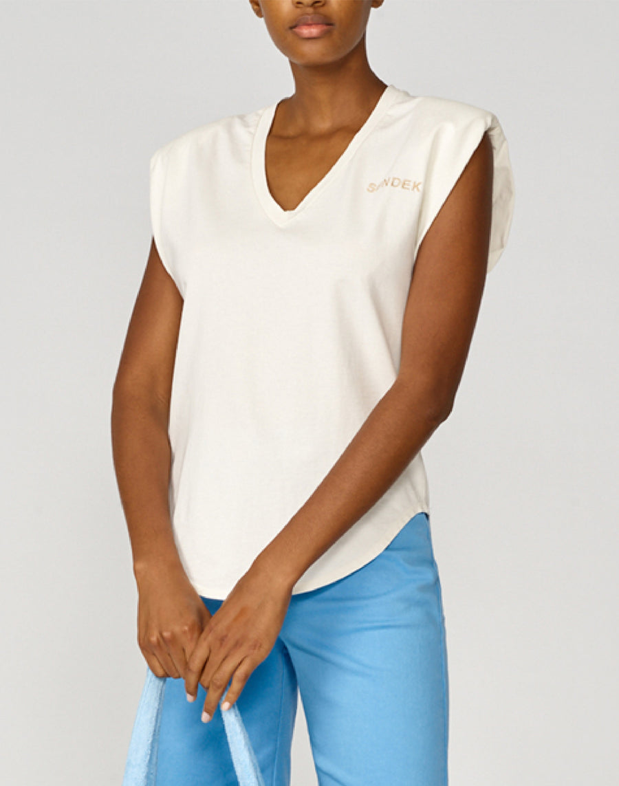 Lightness and style for this women's sleeveless T-shirt with a loose fit. Made of 100% cotton, it is a basic model that can be combined with countless casual outfits.