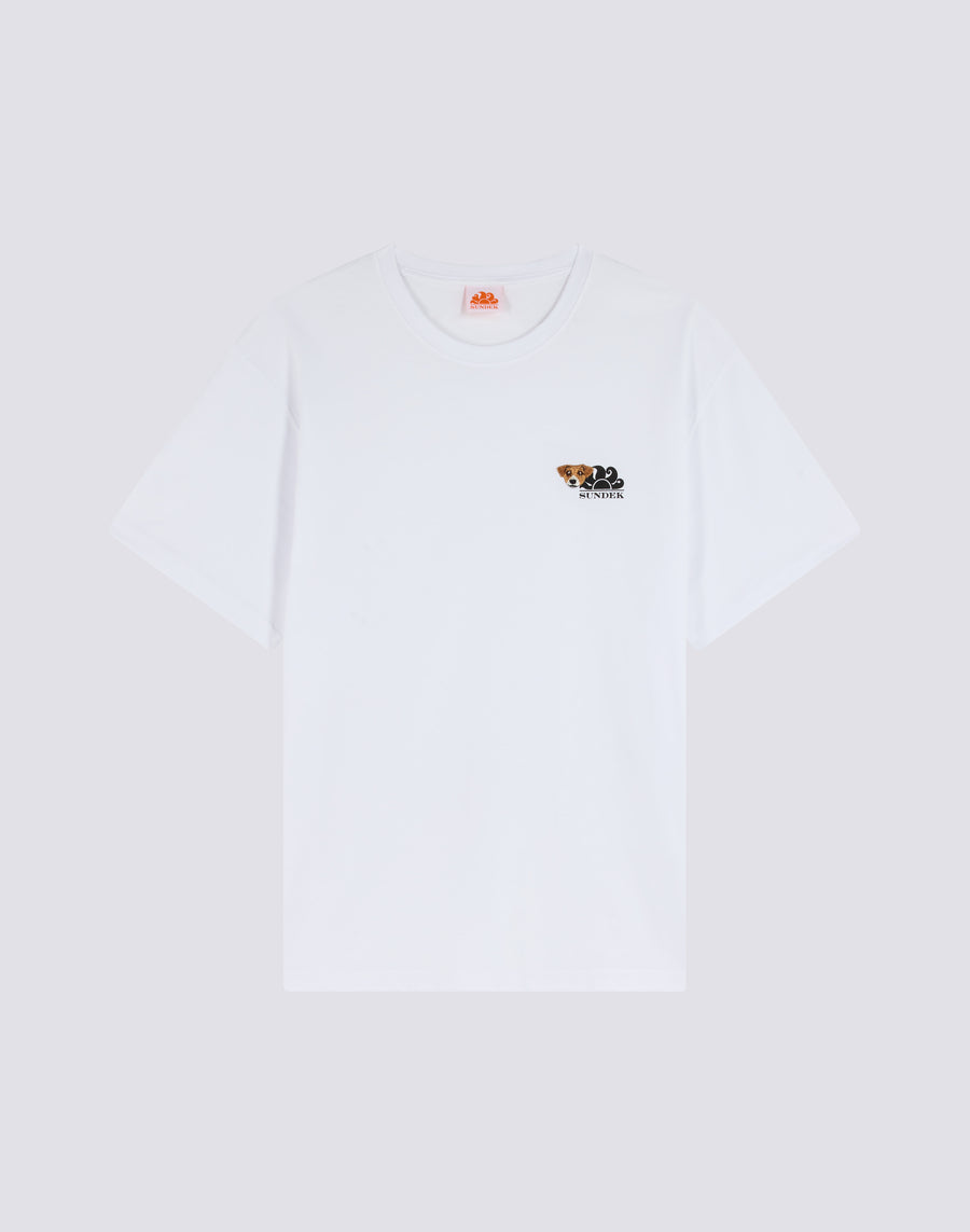 Cotton T-shirt from the exclusive Sundek & Pelo Foundation capsule. This model features a cute Jack Russell, combining the passion for the sea with the affection for our animal friends.