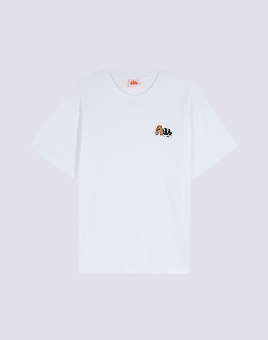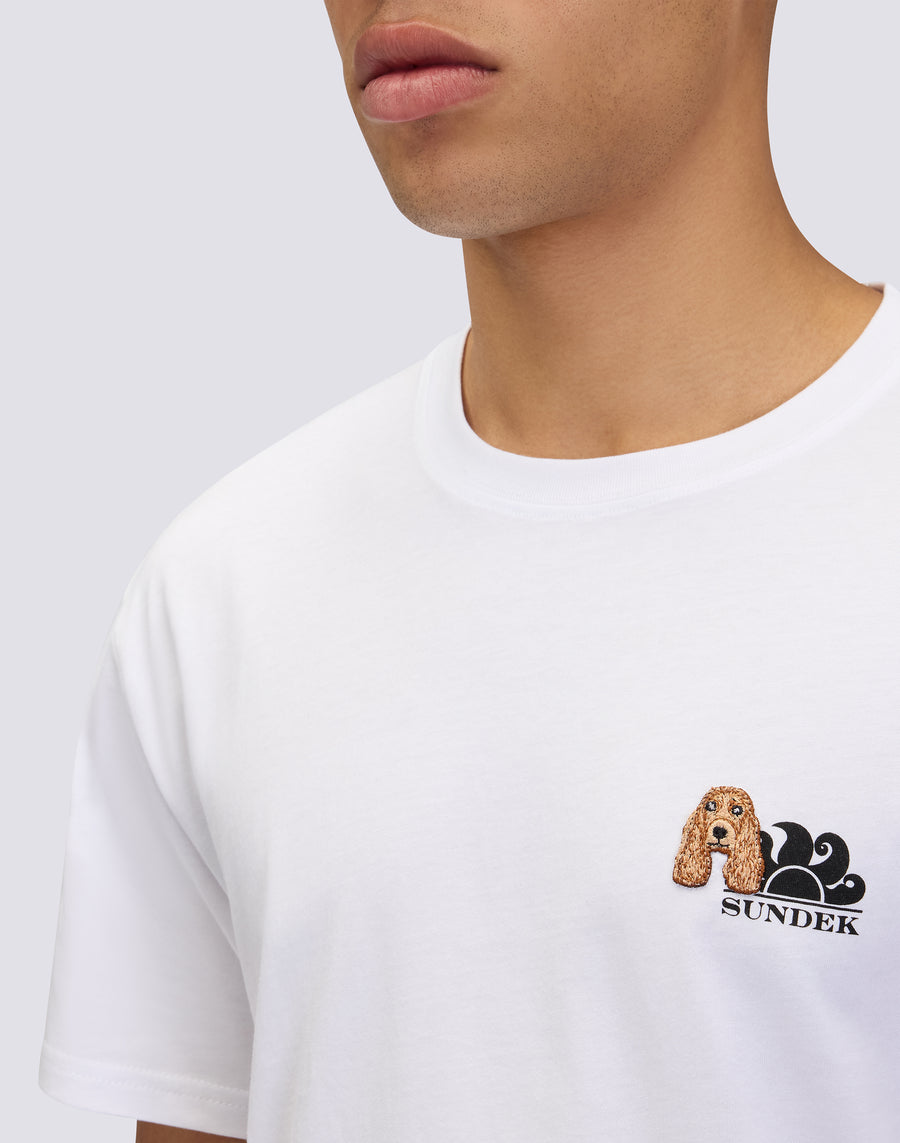 Cotton T-shirt from the exclusive Sundek & Pelo Foundation capsule. This model features a cute surfer cocker spaniel, combining a passion for the sea with affection for our animal friends.