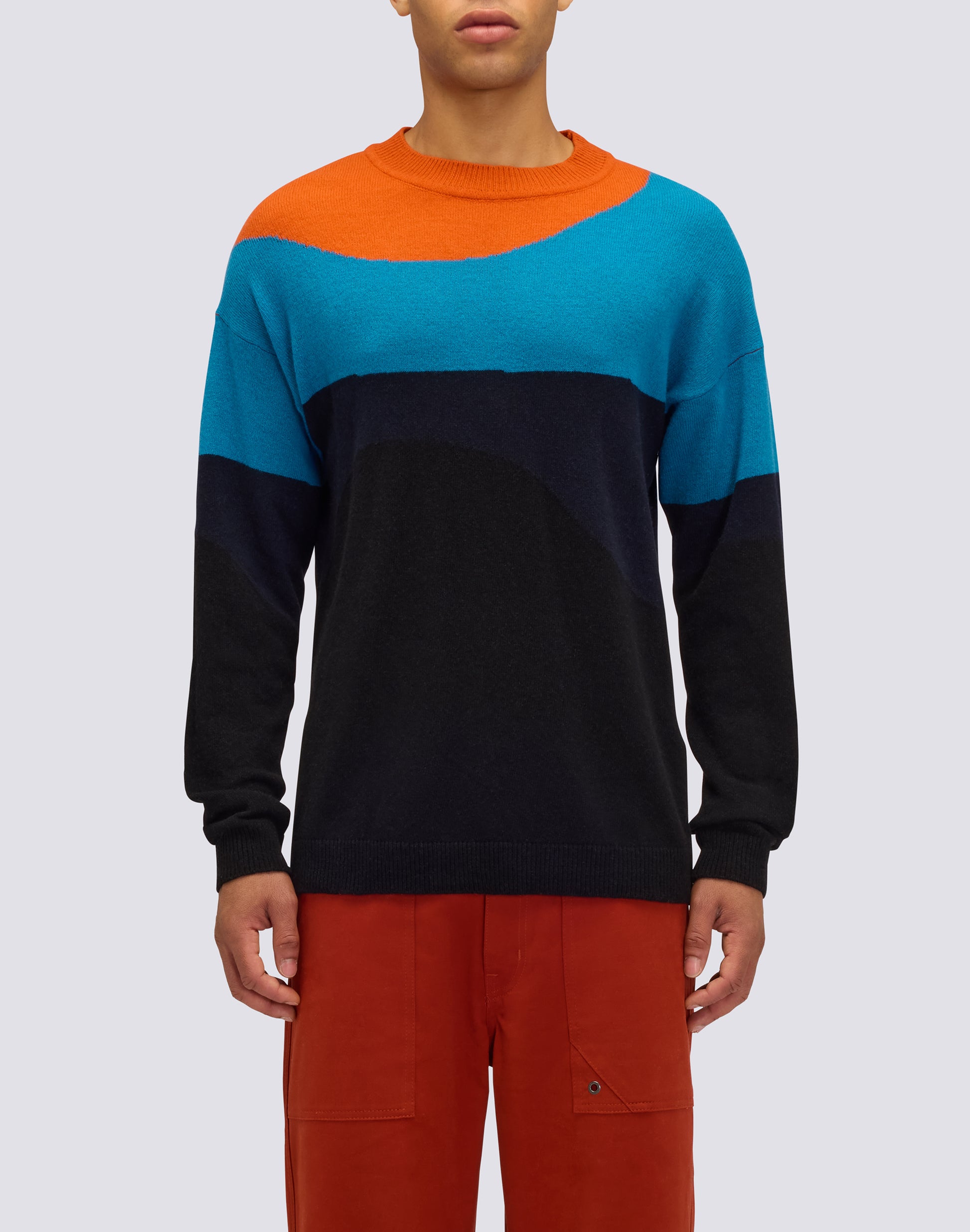 MEN'S CREW NECK SWEATER WITH 3-COLOR INTARSIA