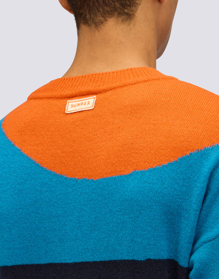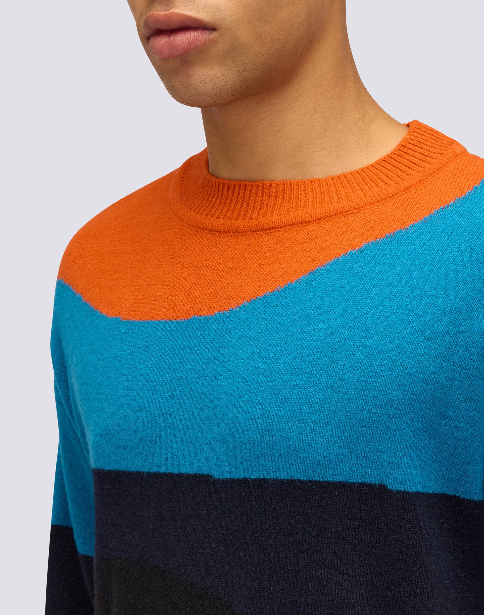 This men's crewneck sweater with a three-color block intarsia combines style and versatility in a sophisticated way. Carefully crafted, it offers ideal comfort for any occasion, while the color combination adds a modern and distinctive touch to your look. Perfect for those seeking an elegant and easily combinable piece.