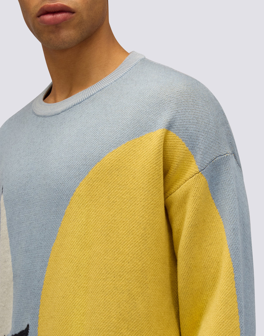 MEN'S CREW-NECK JACQUARD SWEATER WITH BOAT IN THE MIDDLE OF THE SEA DESIGN