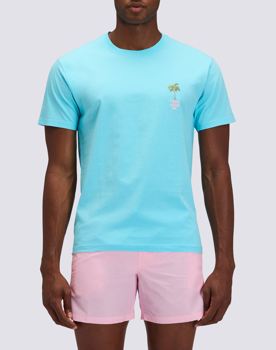 Men's cotton T-shirt with short sleeves and mini palm print and embroidered SUNDEK 1958 lettering.