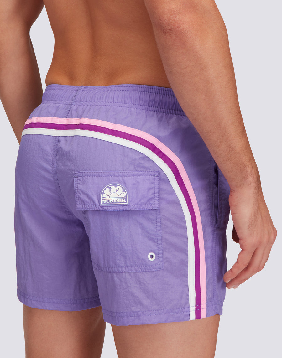 SHORT CRINKLED SWIM SHORTS WITH AN ELASTICATED WAISTBAND