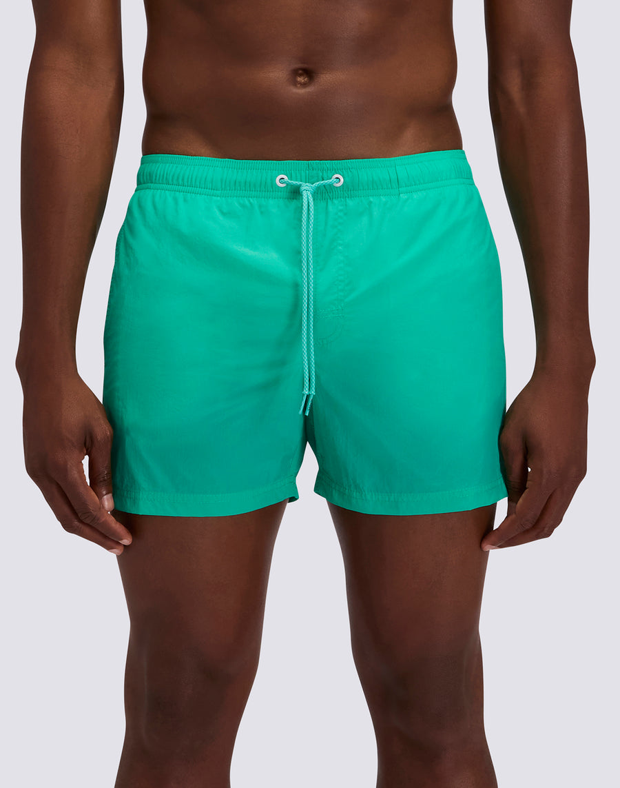 The Crinkled short swim trunks combine iconic Sundek style with a distinctive textile effect: the crinkled texture that adds character and personality. These men's solid-color boardshorts in bright colors are made of nylon taffeta and stand out for their unique look and practicality. The crinkled effect gives the fabric a natural crinkled texture that not only adds a touch of contemporary style but also offers practical benefits: the crinkled fabric hides creases, requires no ironing, and always maintains a fresh and casual look.
