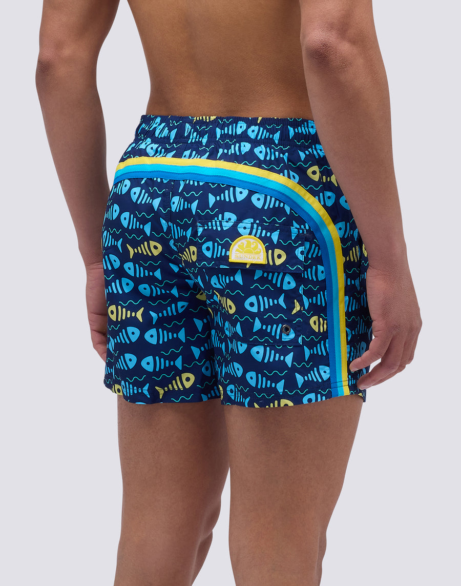 OFISH PRINT ELASTIC WAIST SHORT SWIMSUIT