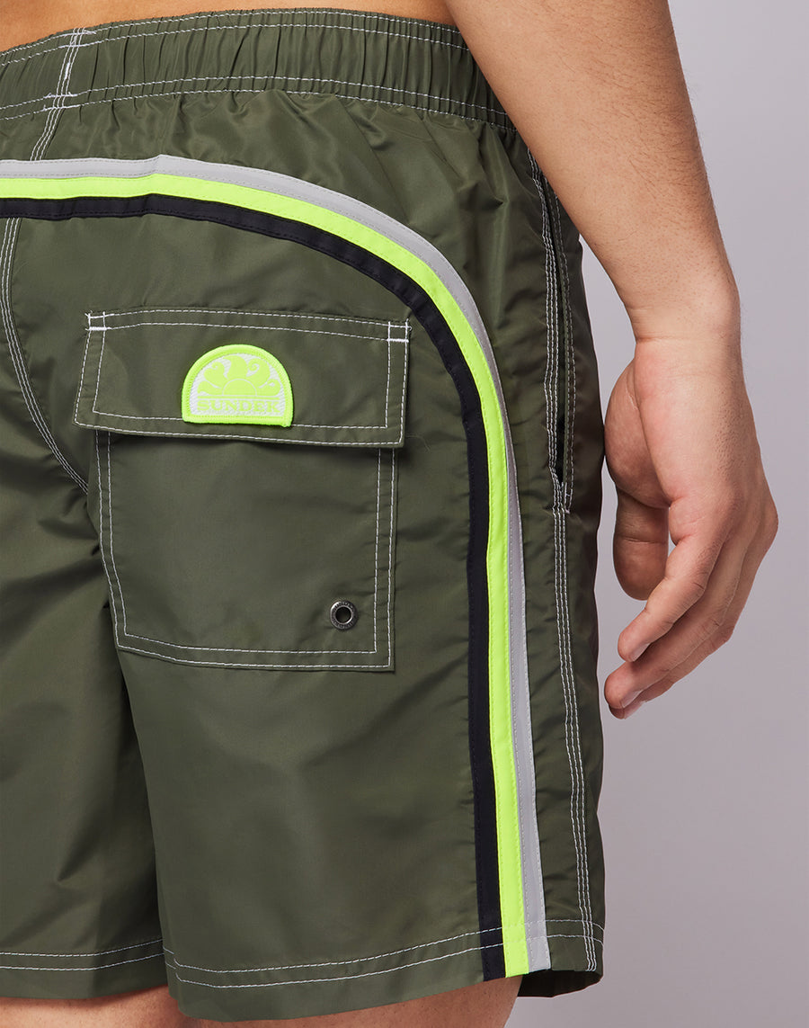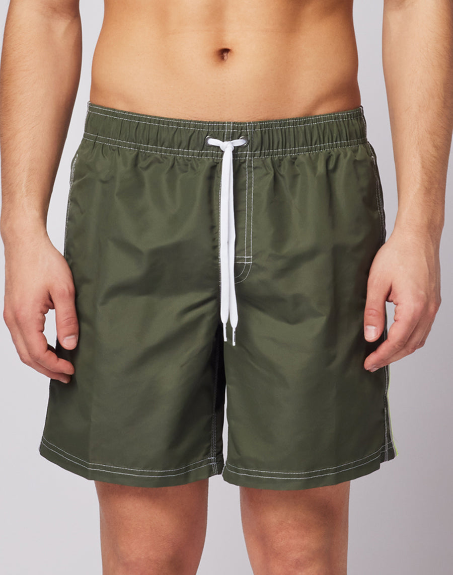 ICONIC TAFFETA STRETCH WAIST MID-LENGTH SWIM TRUNKS