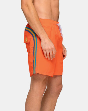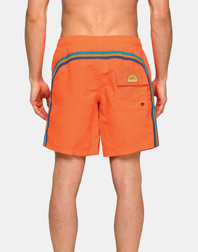 These mid-length boardshorts with an elasticated waistband radiate timeless Sundek style. Stylish, comfortable, and made to last holiday after holiday: our iconic boardshorts feature a drawstring waist and a contrasting rainbow on the back.