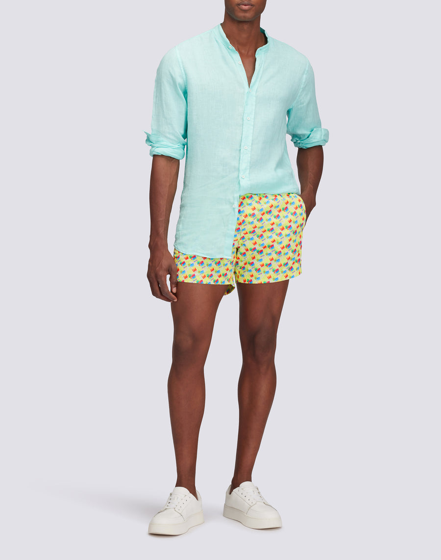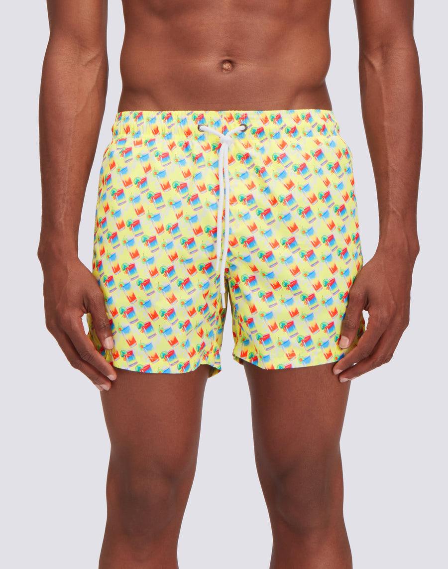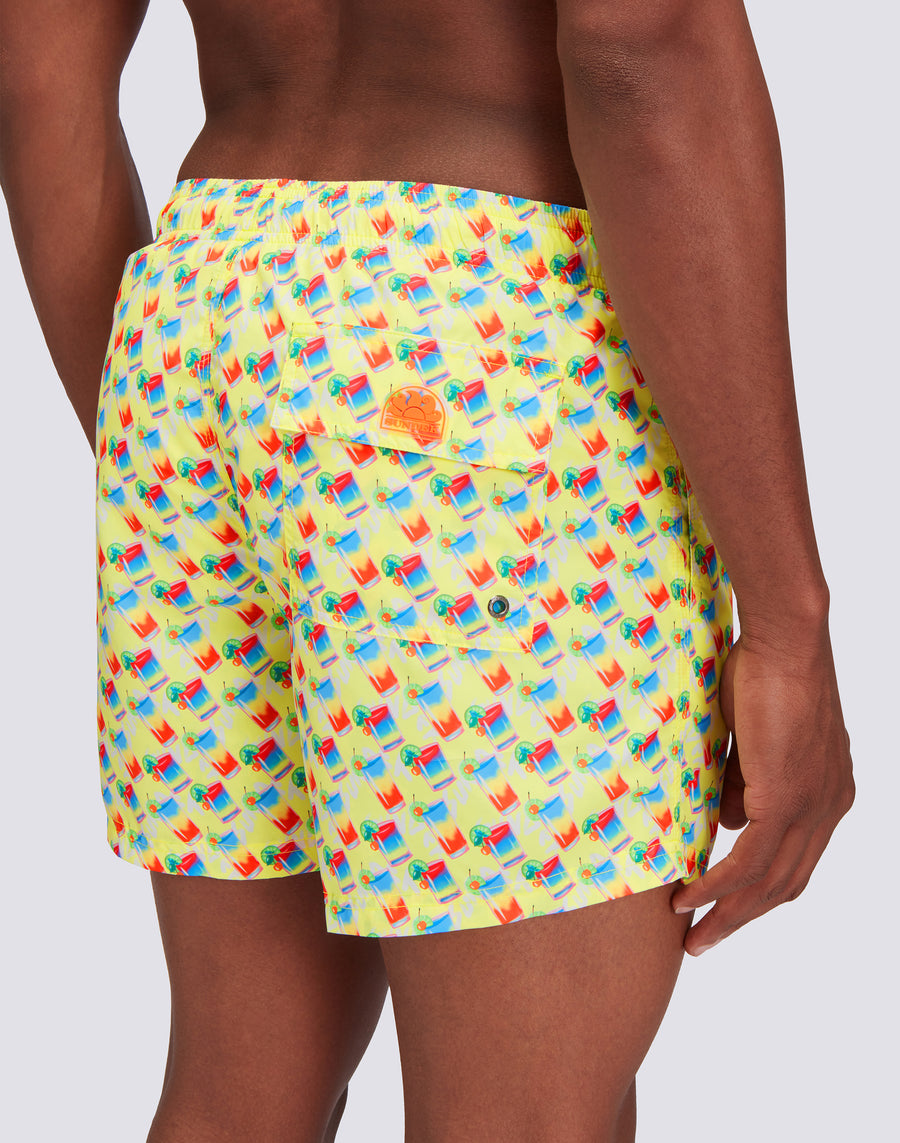 RECYCLED POLY SHORT SWIMSHORTS WITH ELASTIC WAIST SUNDRINK PRINT