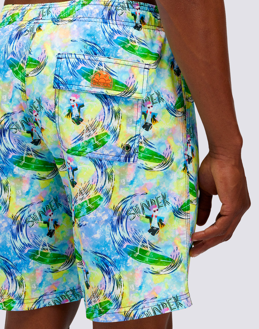 LONG ELASTIC WAIST SWIMSHORTS WITH FLY&DYE PRINT