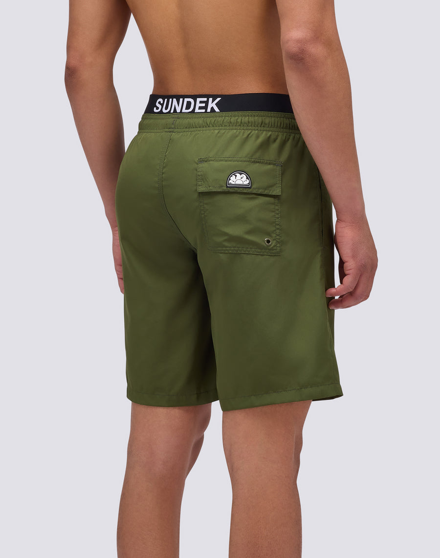MEN'S LONG ELASTIC WAIST SWIMSUIT WITH LOGO ELASTIC