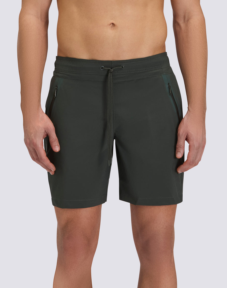 These men's boardshorts combine technical innovation and advanced functionality: 4-Way Stretch fabric for complete freedom of movement, a waterproof heat-sealed front pocket, and a semi-elastic waistband for the perfect fit. The mid-length offers versatile coverage for those seeking uncompromising performance.