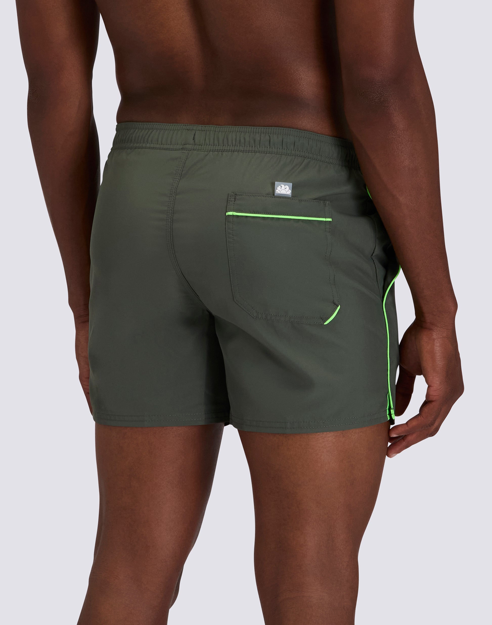 SHORT SWIMSHORTS WITH ELASTICATED WAIST AND CONTRASTING PIPING IN REPREVE® RECYCLED POLYESTER