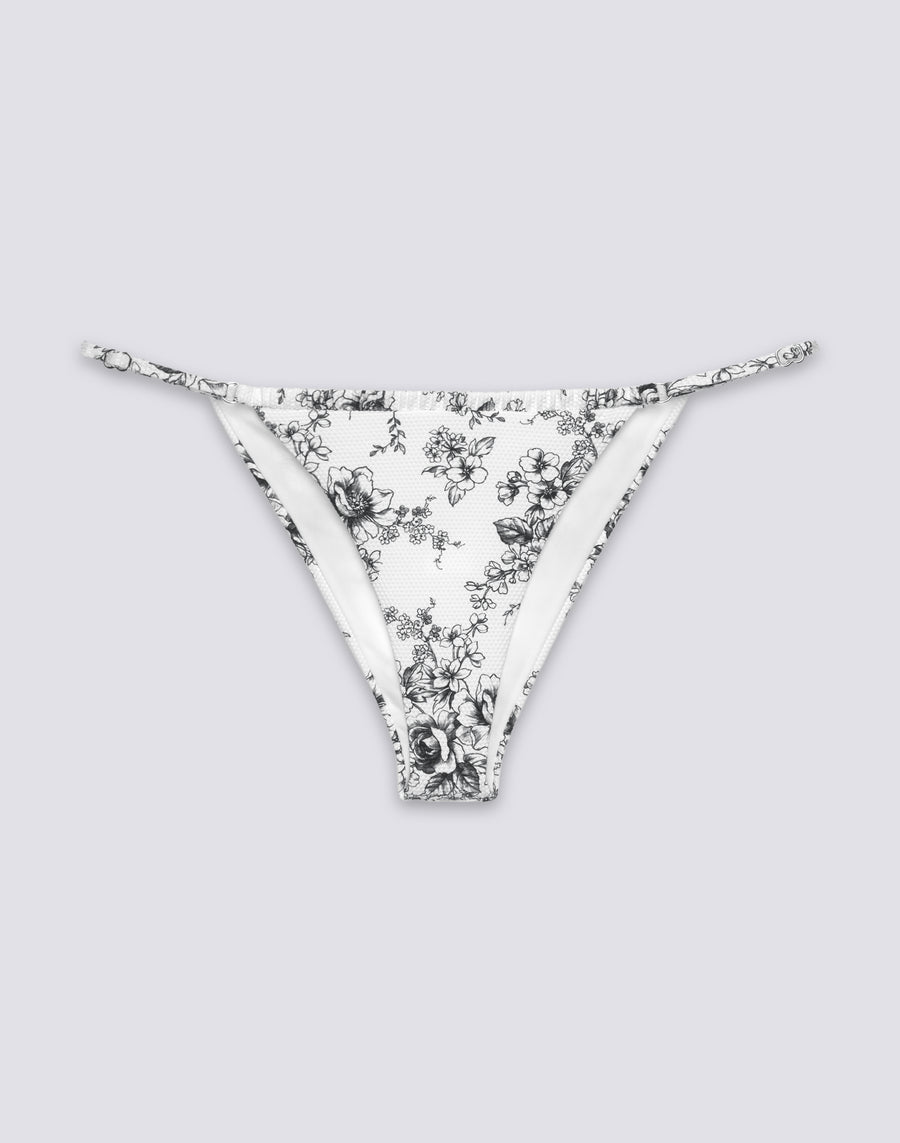 Arizona bralette top with Rose de Joie print, adjustable ties and mini ruffles along the edges. Ideal if you are looking for a romantic-style bikini with a comfortable fit. Pair with the matching briefs, sold separately.