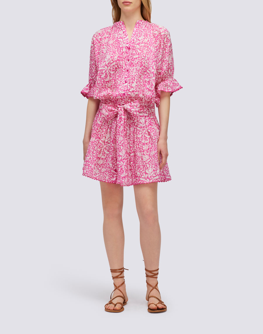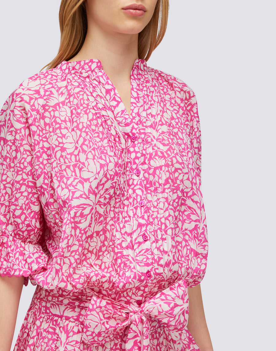 Add a romantic touch to your look with this shirt dress. The bow at the waist accentuates the figure, while the floral pattern gives a touch of freshness. Ideal for a special occasion or for a casual and elegant look.