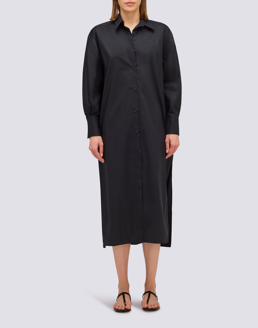 This poplin dress is perfect for any woman who wants to feel elegant and comfortable. The light texture of the fabric is ideal for spring and summer, while the classic and simple cut makes it suitable for different occasions.