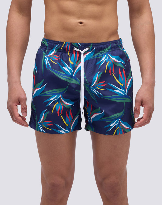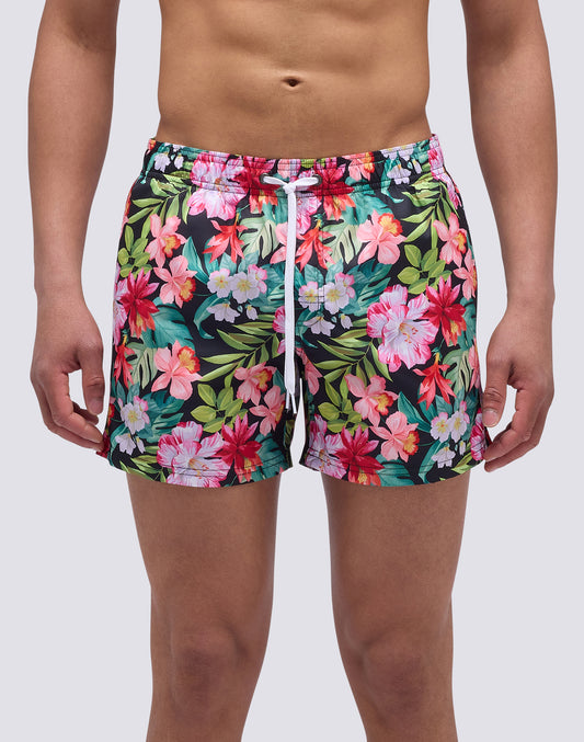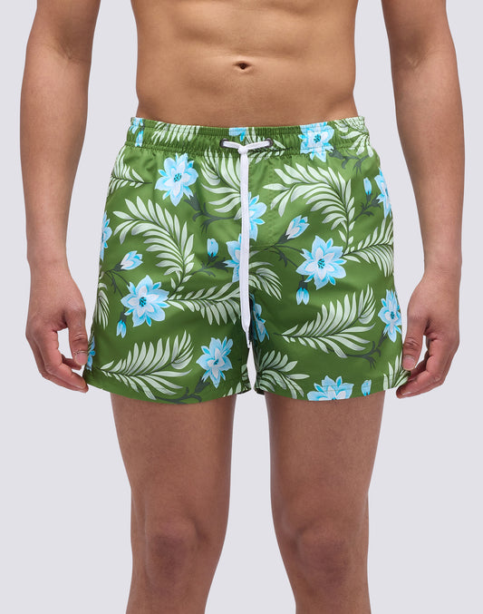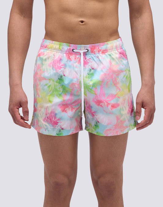 TRAJE DE BAÑO CORTO CON CINTURA ELÁSTICA Y ESTAMPADO MULTIPALM DE POLIÉSTER RECICLADO