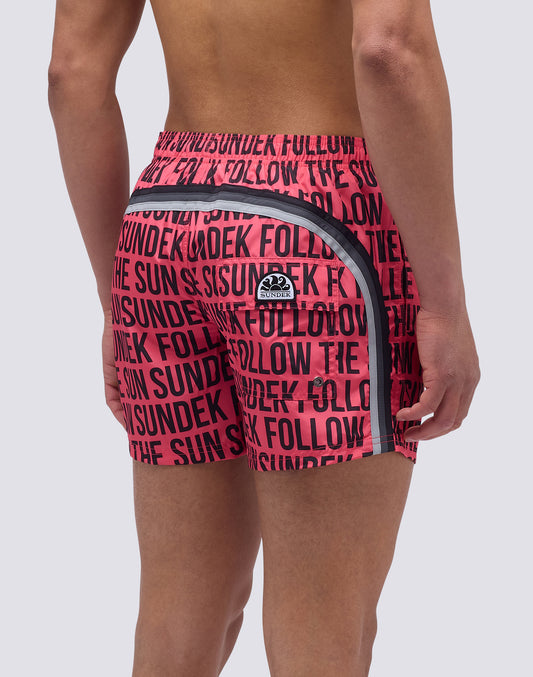 TRAJE DE BAÑO CORTO CON CINTURA ELÁSTICA Y ESTAMPADO SUNCAP DE POLIÉSTER RECICLADO