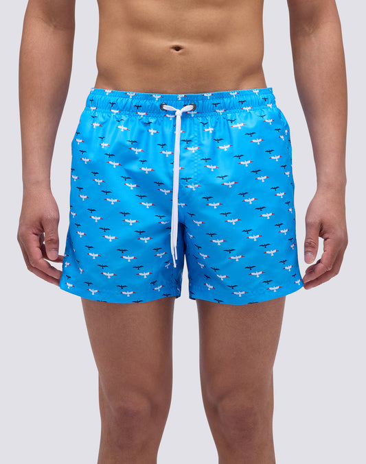 TRAJE DE BAÑO CORTO CON CINTURA ELÁSTICA Y ESTAMPADO CHILINO DE POLIÉSTER RECICLADO