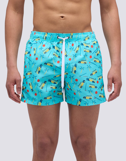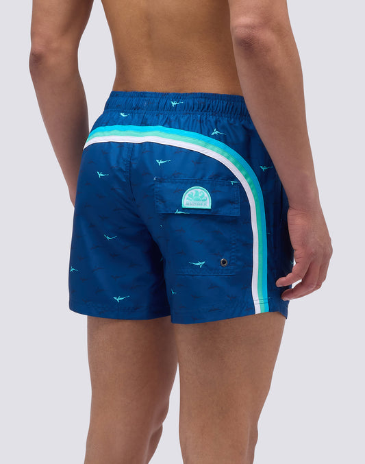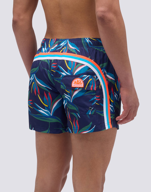 TRAJE DE BAÑO CORTO CON CINTURA ELÁSTICA Y ESTAMPADO SUNICE DE POLIÉSTER RECICLADO