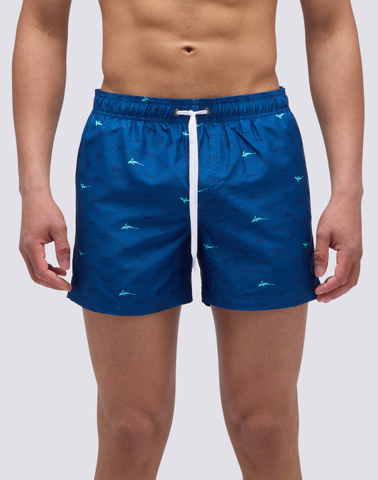 TRAJE DE BAÑO CORTO ICONIC DE TAFETÁN CON CINTURA ELÁSTICA GOLDENWAVE ESTAMPADO DÉNIM