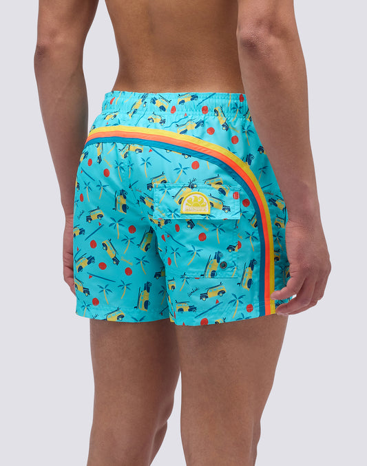 TRAJE DE BAÑO CORTO CON CINTURA ELÁSTICA Y ESTAMPADO RAINBOWS DE POLIÉSTER RECICLADO